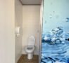 Módulo de 3 baños fabricado en acero inoxidable y paneles de PVC de alta resistencia. Es escalable y permite configurar varios módulos de 3 baños en fila.