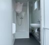 1 urinoir, 1 wastafel en 1 roestvrijstalen wastafelbak met 2 posten, waardoor 3 personen tegelijk gebruik kunnen maken van de unit. 1 aparte douche met een elektrische boiler van 80 L. Tijdgestuurde verlichting met bewegingsdetectie. Voldoet aan de eisen van de arbeidswetgeving voor werven tot 20 werknemers.