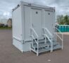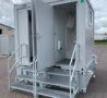 Comfortabel: De WC- en douche-unit is aangesloten en verwarmd om comfort te bieden op uw werf of evenement.